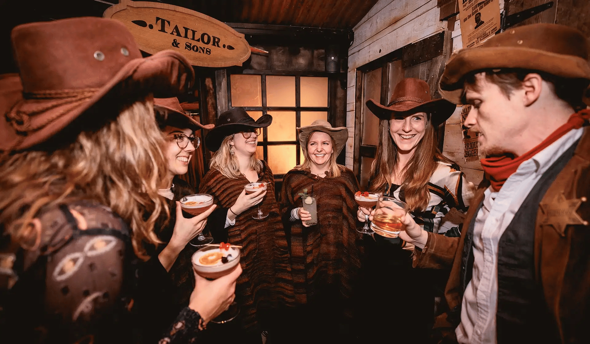Dress up as a bootlegger, bring your own bottle and sip custom cocktails inside a Western style saloon, with actors and a full storyline across the evening.